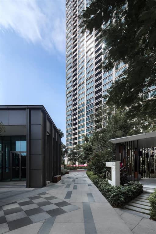 设计团队充分考虑了配套商业与住宅的分隔,将不利影响降到最低。结合原有商业界面,项目整体利用地形优势抬升庭院标高,减少地库开挖成本,形成生态阳光车库。庭院之上是比较私秘的社区庭院,庭院之下设置配套与商业。之上的屋顶花园分别设计不同类型园林景观,营造富有层次感的立体园景,增加空间丰富性和便利性的同时,也隔绝了餐饮等业态对住宅隐私、生活空间的干扰。