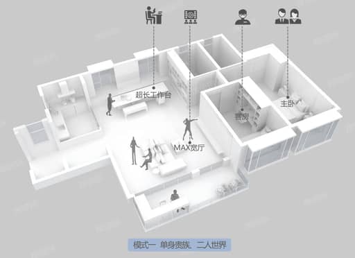一个好的可变户型,不仅预留更多个性化和自主性设计空间,还可以通过空间的分割满足不同阶段的需要,不需要置换房子就可以一房多用。