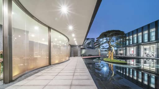 归家动线各个功能节点都被有节奏地串联,如书卷式展开的大门、象征“七圣贤”的古松、取意华山的“山水盒子”,归家礼序层层递进,移步换景。
